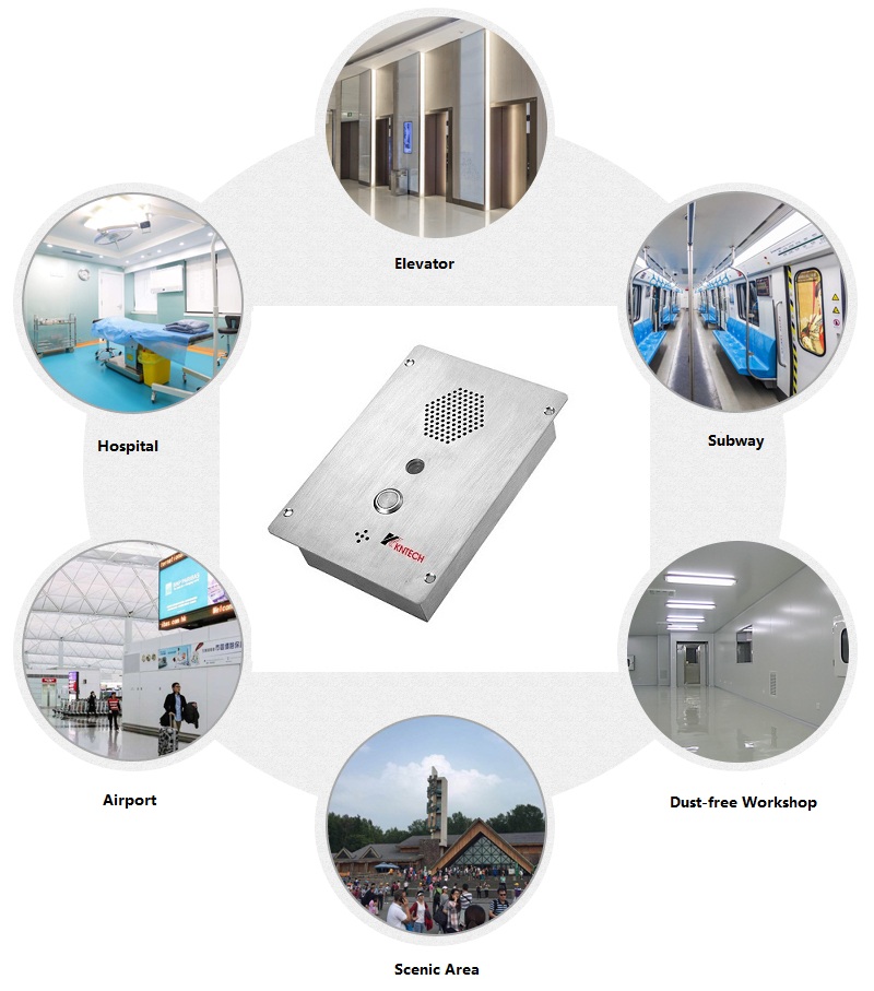 En tant que téléphone public pour intérieur ou extérieur, téléphone avec ascenseur, stations de taxis ou d’autobus ou station, cabine d’autoroute. Chemin de fer, métro, guichets automatiques, tunnel, port, quai, mines, installations de production….Un bon téléphone idéal pour une utilisation dans des atmosphères humides ou corrosives