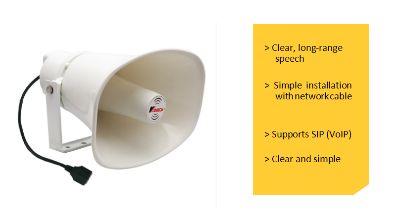 KNSIPSP-L4-15W makes announcements possible from any- where with network connectivity. It easily integrates Voice over IP (VoIP) telephony systems that use SIP (Session Initiation Protocol).