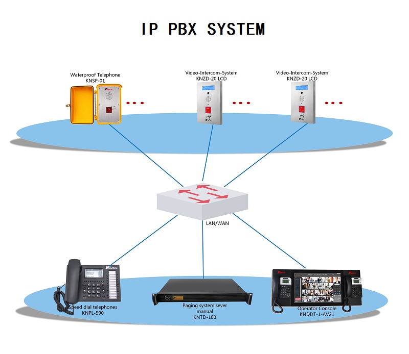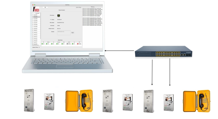 The emergency help point of the entire system and the waterproof anti-electromagnetic interference telephone are all in ip version. The entire emergency intercom system uses ip network communication, which is fast and stable. Emergency help point on the platform, using two-way visual intercom, and one-touch speed emergency station, the tunnel adopts waterproof anti-electromagnetic interference telephone, the terminal uses RJ45 cable to connect to the network switch, and the ip pbx server is connected to the network switch. All ip intercom terminals are registered to the ip pbx telephone server via an operator console equipped with ip pbx software.