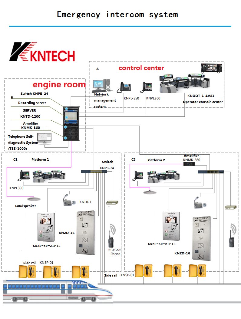 The emergency intercom system is an ip call station system specially set up in the subway. The emergency system is a complete set of communication system. The communication system centrally manages the emergency help point of the platform, the waterproof anti-electromagnetic interference telephone in the tunnel, and the intercom of the subway elevator. The intercom uses the ip pbx system to host all ip intercom using the ip pbx server.