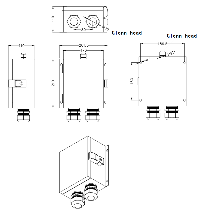 Waterproof junction box is a kind of industrial connector. The junction box is a device that can output two current or data signals through the shunt conversion of a connected power supply or data. Our junction box has one pg11 gland at the entrance and two M36 glands at the exit. The junction box can be installed in the narrow space such as bridge, box, pipe, cable trench, etc., which does not occupy the effective use area of the building, is convenient to install, and does not need to cut off the main cable.