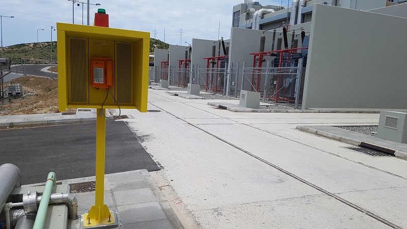 Waterproof telephones and sound and light alarms are used outdoors in power plants