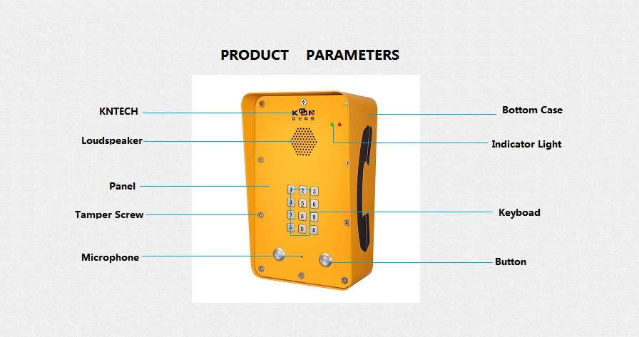 La carcasa del teléfono de carretera adopta los nuevos materiales compuestos, el diseño es conciso y fácil, la carcasa gruesa y fuerte puede evitar golpes y golpes. Los compuestos SMC pueden prevenir el envejecimiento, la resistencia a la corrosión, la resistencia al agua, la resistencia a altas y bajas temperaturas, el retardante de llama y el aislamiento. El teléfono Highway sos alcanza los requisitos de impermeabilidad de grado IP66; El rendimiento del producto es estable y confiable.