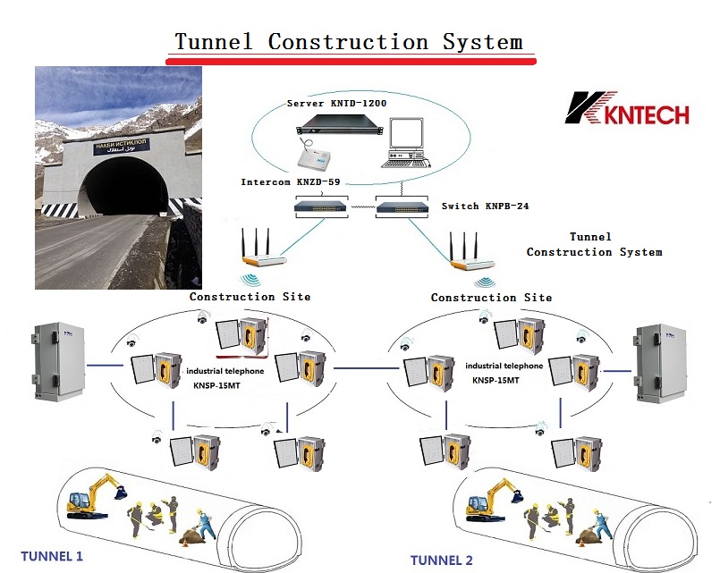 The weatherproof phone box is equipped with an outdoor telephone KNSP-16. The telephone box and the outdoor telephone are used together in a communication dispatching system for tunnel excavation.