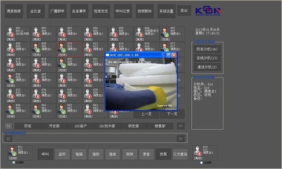 Кадровая структура, идеальная функция и гуманизированный дизайн могут занять высокую долю рынка в видеоконференции жесткой конкуренции. Система готовности к чрезвычайным ситуациям: когда система сигнализации отслеживает возникновение чрезвычайной ситуации в каком-либо месте, она автоматически инициирует сигнал тревоги и выход на сервер планирования. Сервер планирования запустит систему готовности к чрезвычайным ситуациям. Система будет звонить или транслироваться ответственному лицу или связанному с ним терминалу диспетчера звонков для оперативного оповещения по заранее определенному соответствующему номеру. функция видеосвязи: при вызове диспетчера диспетчера диспетчера диспетчерского терминала (IP - телефоны или беспроводные терминалы) диспетчерский сервер автоматически настраивает IP - телефоны, соответствующие IP - камерам, и автоматически появляется на большом экране, чтобы увидеть текущее состояние IP - телефонов. когда авария происходит в том или ином месте, диспетчер может видеть информацию непосредственно на большом экране, с тем чтобы он мог сообщить об этом через IP - телефоны или непосредственно по внешней телефонной связи компании.