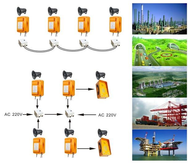 Каждая станция работает независимо. Все телефонные станции работают через 8-14 жильный кабель параллельно. Выход из строя одной станции не влияет на нормальную работу других пользовательских станций. Пользователи могут по желанию расширить станцию или переместить ее. Это неограниченно.