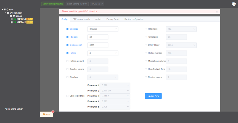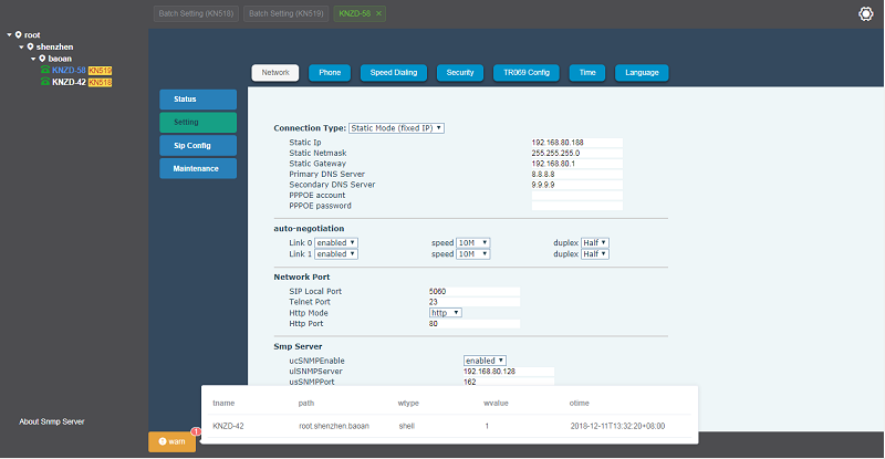 يستخدم نظام إدارة الشبكة الموحدة SNMP بشكل أساسي في أنظمة إرسال الهاتف الكبيرة. يمكن استخدام النظام في المترو ، المحطات ، مواقع البناء الصناعية ، استخدام النظام لإدارة فئة من المطاريف على دفعات ، أو لإدارة محطة واحدة.