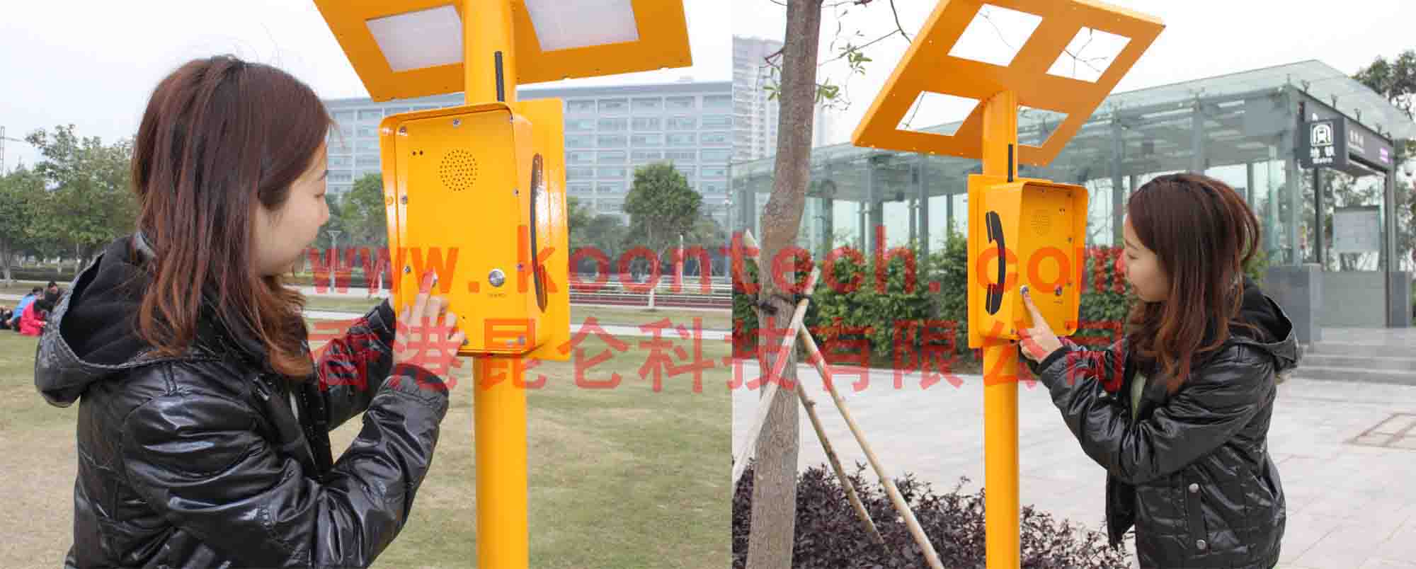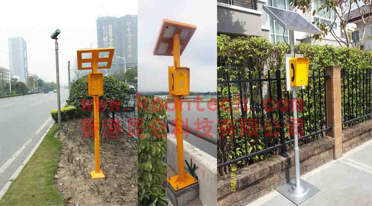 Sos الهاتف GSM في الهواء الطلق متكامل الإنذار المبكر وظيفة التنبيه. نظام المراقبة والتحكم المتكامل من مكالمات من نقطة إلى نقطة ، وكاميرا مراقبة ، ومركز التحكم. وبمجرد أن يكون هناك أمر غير عادي ، يمكن الاتصال على الفور بمركز التحكم في المكالمات الهاتفية ؛ ويمكن أيضا أن تستخدم مركز التحكم مباشرة عن طريق المكالمات إلى الدعاية ، وتحذير تأثير رادع.