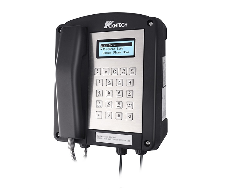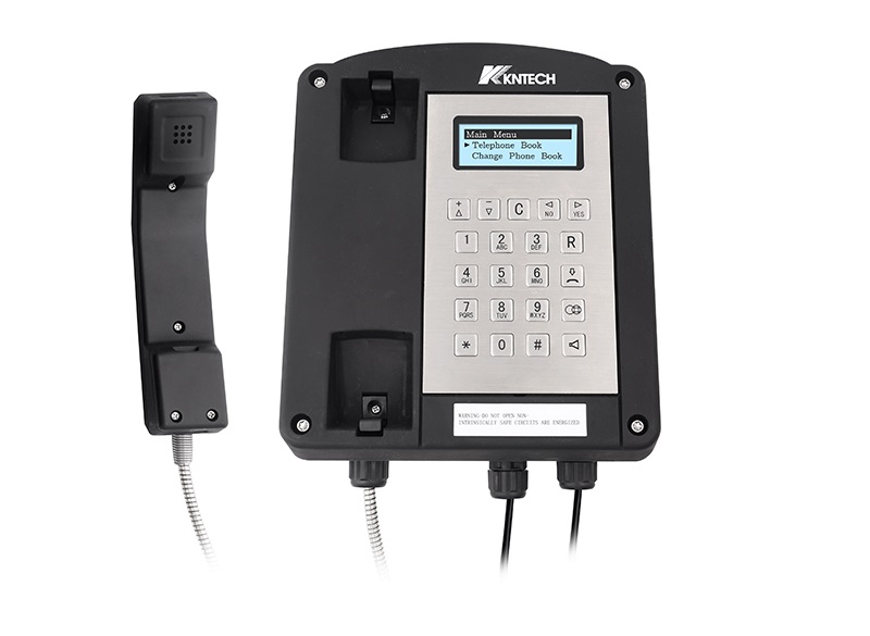 Instrinsically safe telephone work as atex equipment made of GRP by die casting. The IECEx explosion proof telephone is rugged and durable. KNTECH design and manufacture the telephone with IECEX tertification and export to 50 countries. This Explosion proof Instrinsically safe telephone works in Hazardous Area. The explosion proof telephone use in zone 1 and zone 2. It can also use in Division 2.Ex II 2 GD & Ex ii 2G IECEx Certified explosion proof telephone.