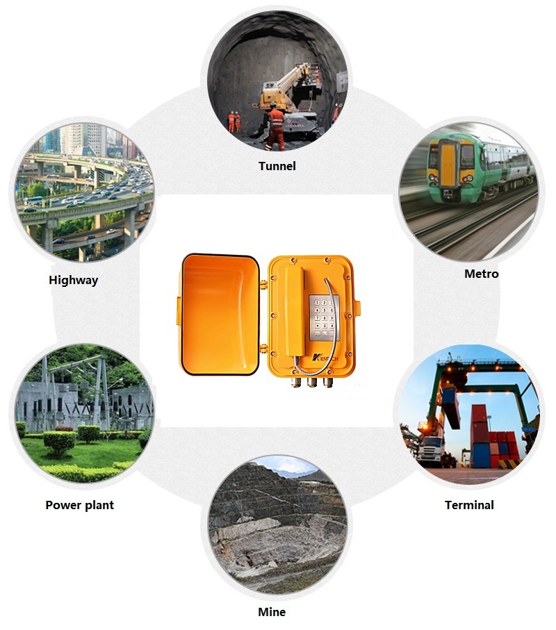 Téléphone antidéflagrant Le téléphone antidéflagrant a été spécialement conçu pour les lieux inflammables et explosifs tels que le charbon, couramment utilisé dans les usines et les mines de niveau H 2. La production de téléphones antidéflagrants doit être conforme aux "dispositions provisoires en matière d’inspection de la fabrication de matériel électrique antidéflagrant" du premier département de l’industrie des machines, charbon, produits pétrochimiques ", doit satisfaire aux exigences en matière de protection antidéflagrante de niveau 2 H.