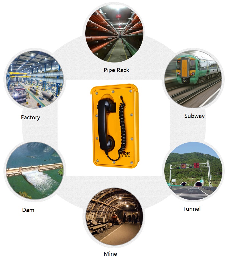 Téléphone industriel pour tunnels en alliage d'aluminium moulé sous pression. Le téléphone industriel est robuste et durable. Une conception d'étanchéité spéciale permet d'assurer une étanchéité complète jusqu'à IP66. Imperméable, anti-poussière et résistant à l'humidité. Le téléphone industriel largement utilisé dans les tunnels et les extérieurs. La plupart des projets de métro et de train à grande vitesse nécessitent l’installation d’un téléphone IP66 pour les communications d’urgence. Les autoroutes et les centrales électriques ont également besoin d'un téléphone industriel. marine a besoin de téléphones résistant à l’humidité. Les téléphones industriels ont une version analogique et une version Voip pour les clients.