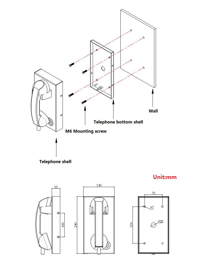5. Connection: RJ11 screw terminal pair cable 6. Sound level of ringing:over 70dB(A).