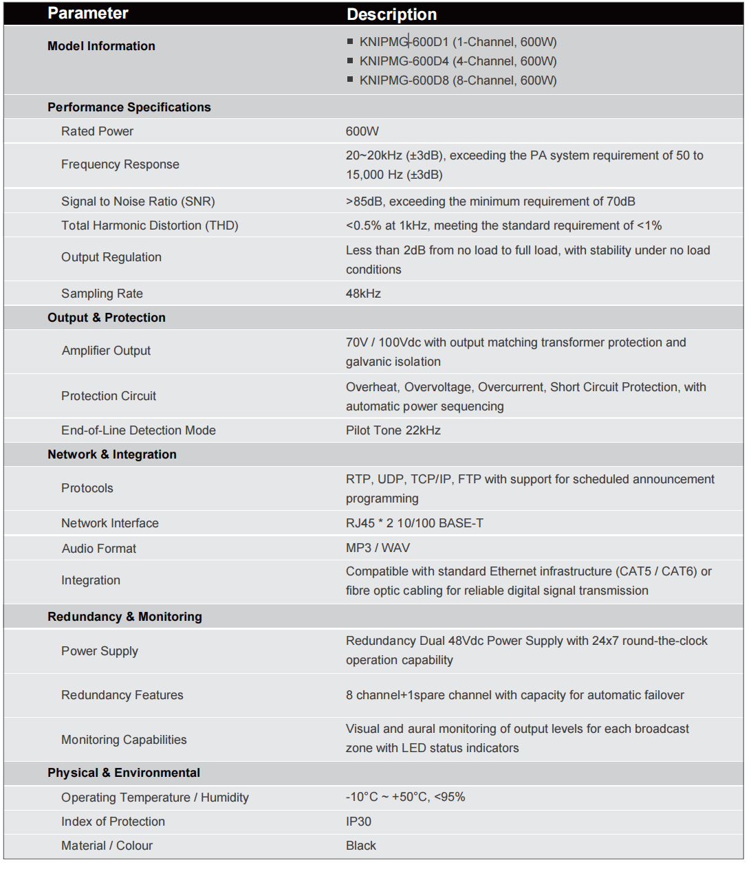 This is the promise of the KNTECH KNIPMG-600 Series IP Amplifier. It is the muscle behind the message, engineered to ensure that every word is heard, every instruction is understood, and your duty of care is upheld without compromise.