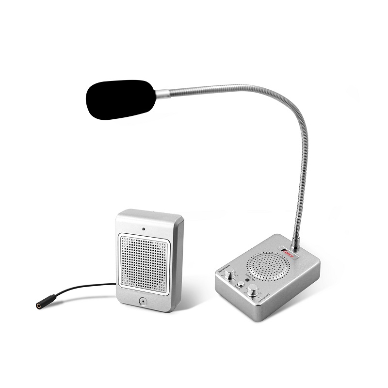 Security window intercom system that provides hands-free communication for VOX operation between the customer and the person opposite the security glass. The system uses speaker drivers and acoustic tubes to provide communication without compromising the integrity of the glass. Window intercom systems can be used in banks, ticket counters or any other area where there is a window between interlocutors.