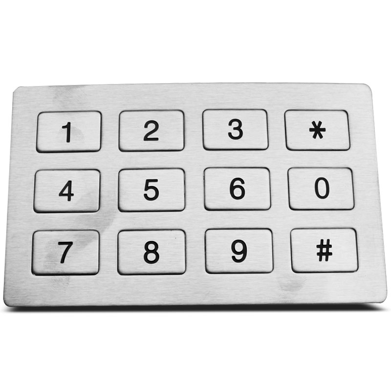 12 keys compact format IP55 dynamic vandal proof stainless-steel encoding keypad with industrial encodingphysical science controller supporting DES/TDES shieded & protected by stainless-steel housing, industrial PCB with carbon-on-gold key switch technology with long stroke (2.0mm) with very sensible tactile feeling for quick and correct information input with none noise, prime stainless-steel plate with rib bolts beneath prime stainless-steelplate for prime panel mounting resolution.