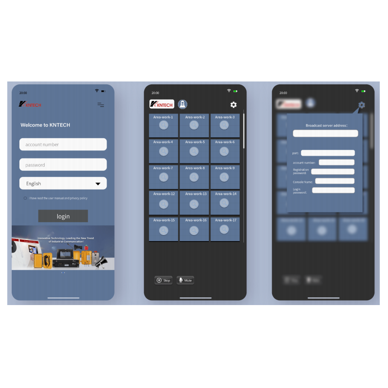 The core of the PA system is the KNPA-50 server. The mobile phone installs PA-App to carry on the broadcast operation to the broadcast system terminal. The whole system consists of many types of broadcast terminals, users can choose a variety of broadcast terminals based on the actual situation.