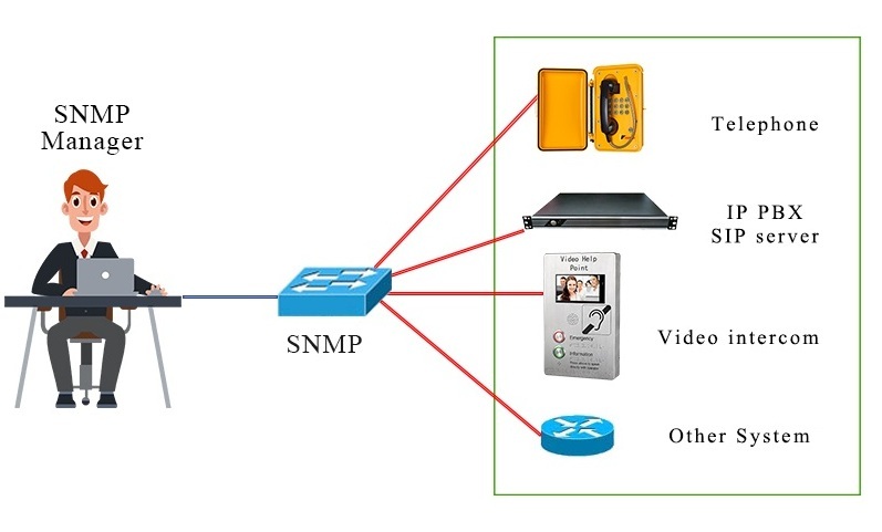 The SNMP unified network management system is mainly used in large telephone dispatching systems. The system can be used in subways, stations, industrial construction sites, using the system to manage a class of terminals in batches, or to manage a single terminal..