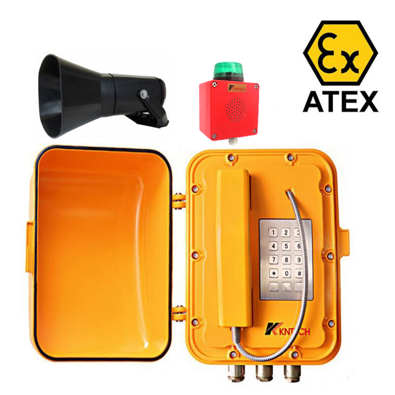 The explosion-proof telephone KNEX8 is the only explosion-proof telephone in Asia that has passed ATEX certification. This explosion-proof phone can be used in hazardous areas. Explosion-proof phones are used in Zone 1 and Zone 2. It can also be used in Division 2.Ex II 2 GD & Ex ii 2G ATEX certified phones. Atex phones based on atex zone include atex zone 2 and atex zone 1 and atex zone 22.