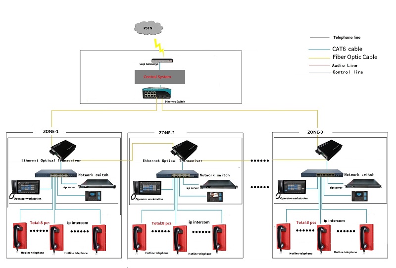 We focus on the field of communications, and we provide customers with a large number of solutions. We have the most advanced VOIP telephone system, fire alarm system and other systems. The following is our own analog field built communication system, in the video we will introduce the characteristics of our communication system one by one.