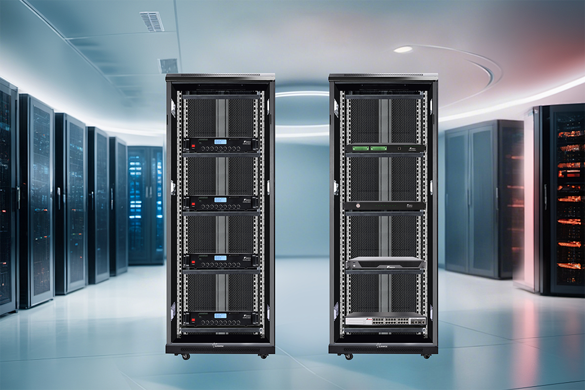 8 + 1 Amplifier Redundancy: KNIPMG-600D amplifiers carry a spare output channel, provide A/B speaker-line switching, and support AES67 audio with AES70 control and encryption.