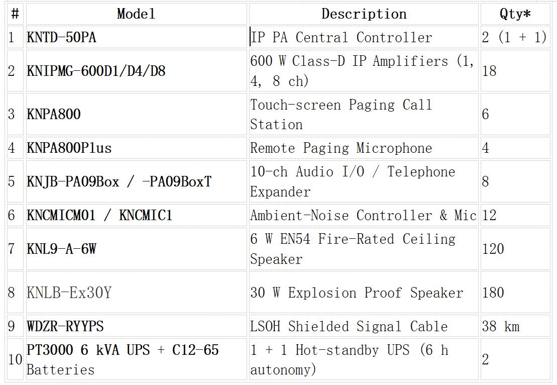 Kuwait Oil Company (KOC) expanded the field in 2022, mandating a fully digital Public-Address & General Alarm (PA/GA) system that would remain operational in a 55 °C desert environment, satisfy EN 54-16 / ISO 7240-16, and integrate seamlessly with DCS and fire-alarm subsystems. KNTECH was appointed the single-source EPC contractor Joint Venture JV, responsible for engineering, procurement, construction, commissioning, and a 36-month O&M program. The contract is listed in KNTECH’s 2022 overseas references as “Kuwait Oil Project – Design / Supply / T&C / Maintenance.”