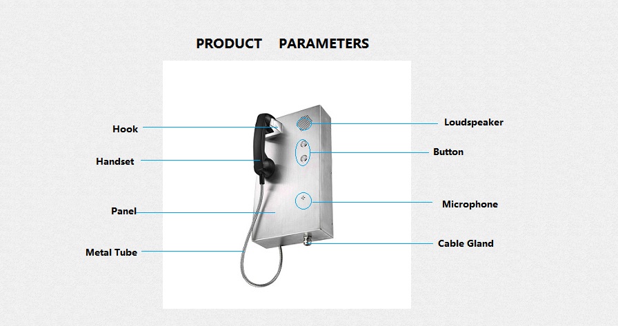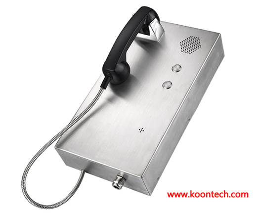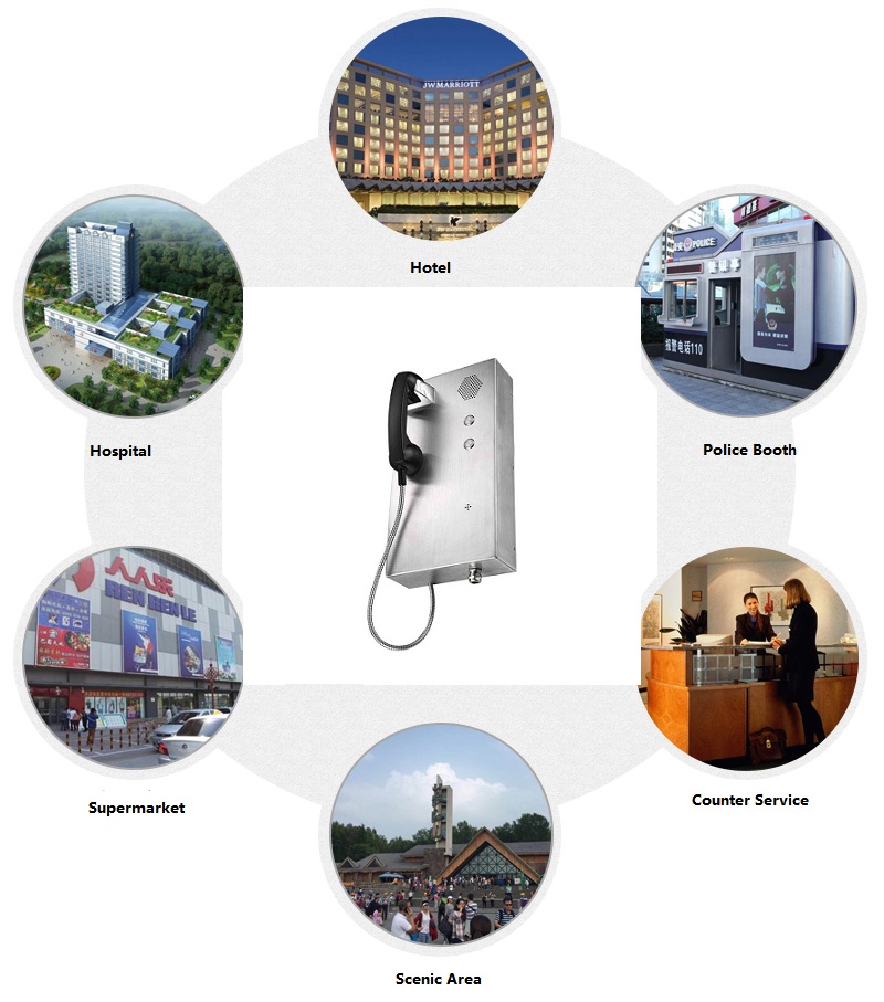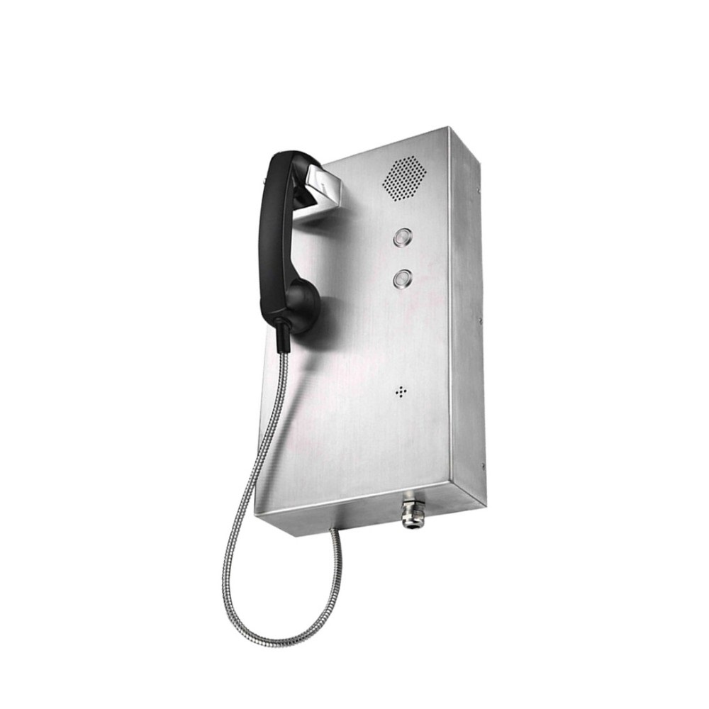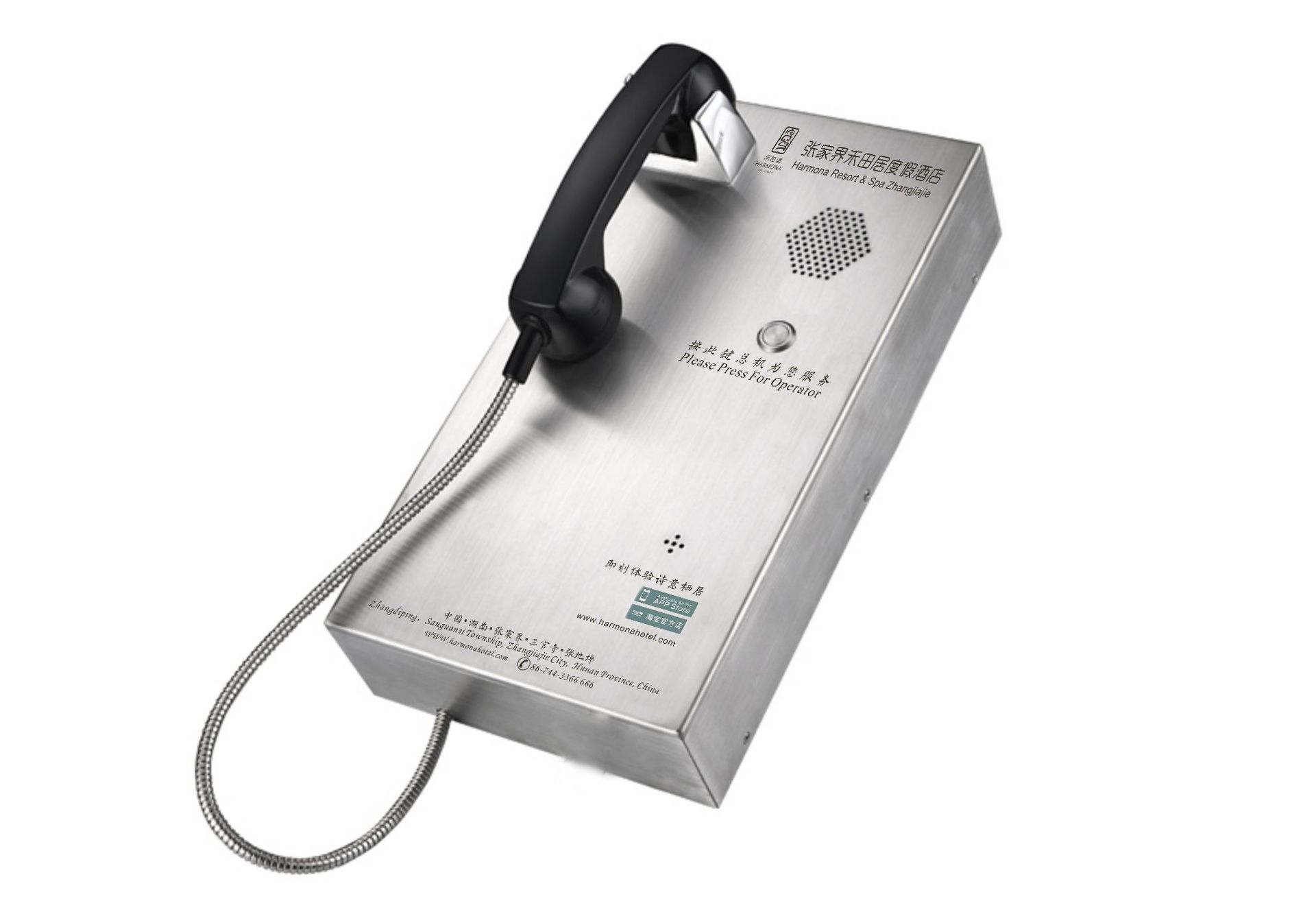 El teléfono con altavoz es un teléfono para exteriores, especialmente diseñado para lugares escénicos al aire libre y una comunicación telefónica de emergencia. Este teléfono está hecho de acero inoxidable ya que la carcasa del teléfono, de apariencia suave y brillante, no es fácil de corrosión, evita la violencia. Con el sistema telefónico de marcación automática, con el teléfono, solo tiene que descolgar el teléfono y marcar automáticamente en la sala de control.