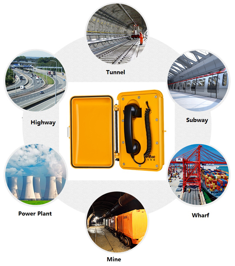 Somos una empresa de telefonía ferroviaria. producimos gran cantidad de teléfonos de emergencia en carretera y exportamos a muchos países. Los ERT (teléfonos de emergencia en carretera) son ampliamente utilizados en vías de ferrocarril. La mayoría de las líneas de metro subterráneas dentro del túnel necesitan instalar un teléfono ferroviario. Este teléfono ferroviario instalado en el exterior y necesita waterpo de IP66. Los teléfonos de los ferrocarriles deben ser robustos y rígidos. En algunos países ERT llama ECB (llamada de emergencia).