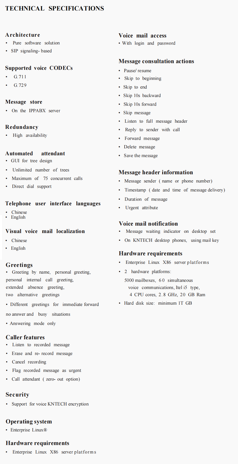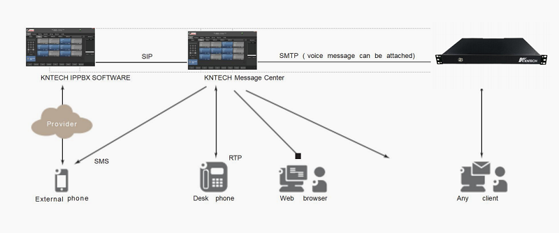KNTECH Message Center is a pure software voice- messaging solution that enables network-wide advanced voice mail services across any voice network infrastructure, providing messaging access from internal or external telephone devices.